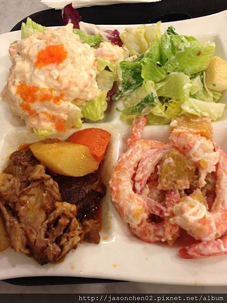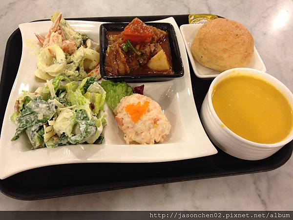 輕淡點的,有凱薩沙拉等,它也有熱食,紅燴牛肉,