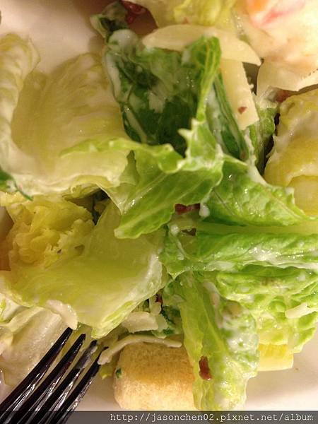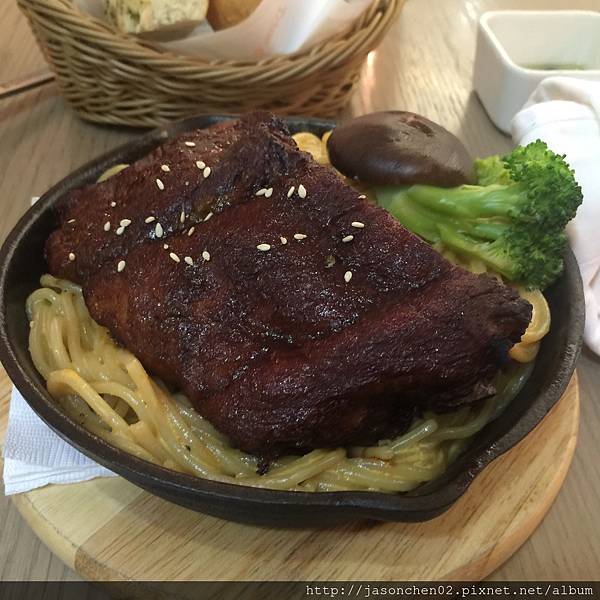 主菜是豬排義大利麵,豬排還不錯,麵可能起司放多了,