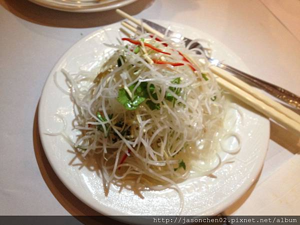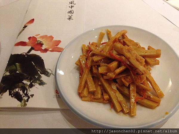 也許是肚子餓了,趁還沒上菜,又點了一碟麻辣筍絲,