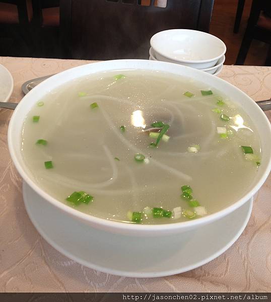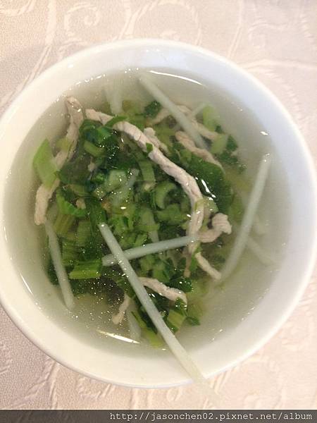 又點了一道清淡的雪菜肉絲湯,裡面有不少筍絲,的確