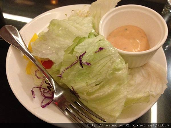 不一會就上了一道生菜沙拉,雖然蔬果不多,還不錯‧