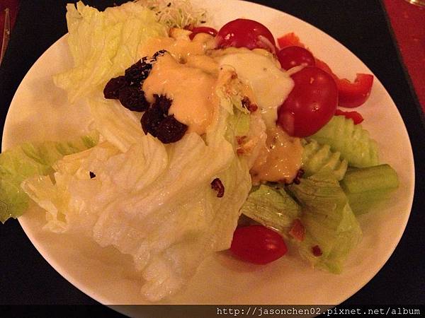 第一輪當然是清爽開胃的沙拉,自行組合了千島與凱薩醬,