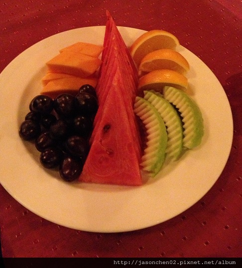 在包廂享用,所以受到了VIP禮遇,肉排與水果