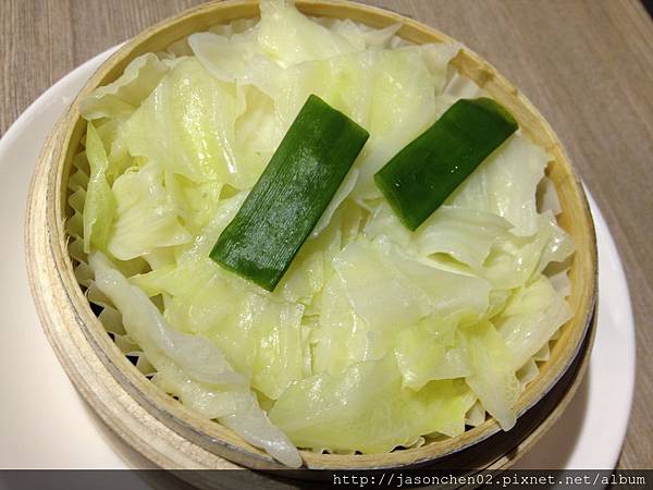 蒸高麗菜,看起來淡而無味,吃起來還蠻爽口