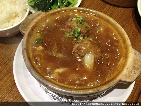 獅子頭套餐(NT$260),一個小砂鍋的獅子頭、青菜、白飯以及百菇湯