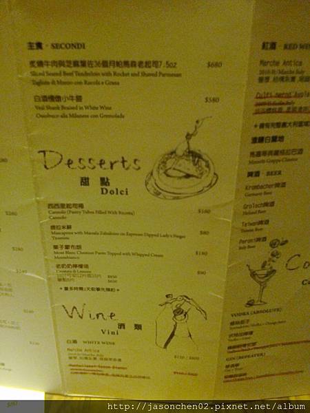 菜單分為前菜、主菜、甜點和飲料,