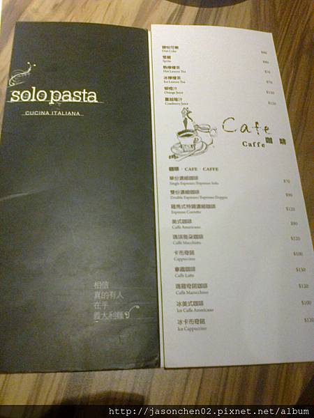 Solo Pasta直譯約是”義大利麵的獨角戲”之意,