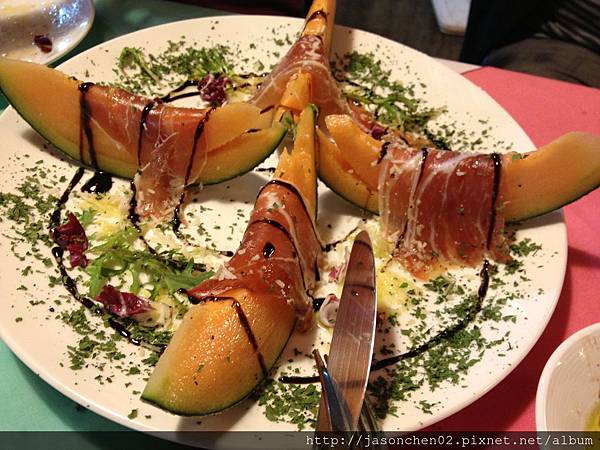 帕瑪火腿就是生火腿片,甜瓜正是季節,特別好吃