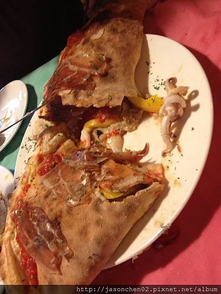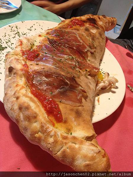 最後的重頭戲來了,義大利披薩餃,大如全隻火腿,十分可觀,內裡