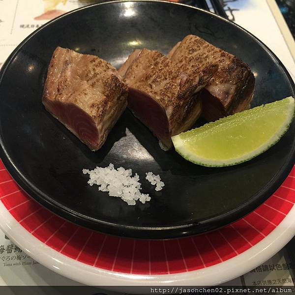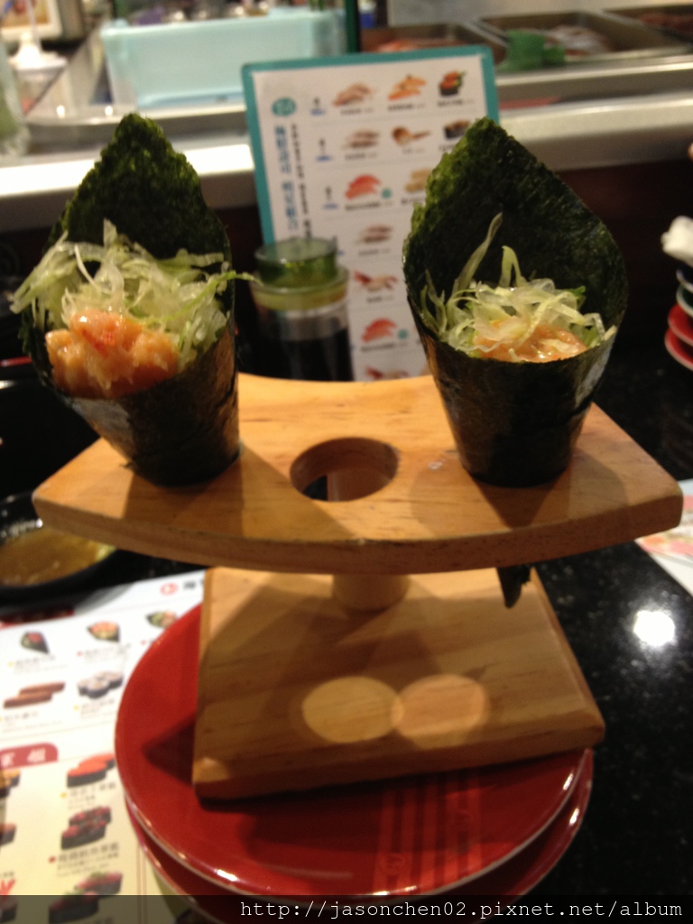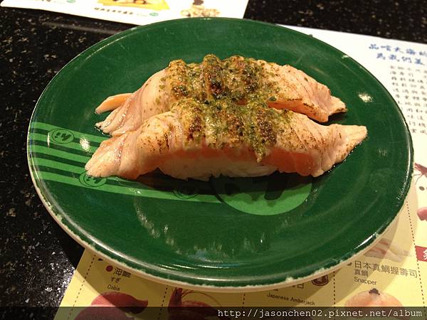 入座之後,眼明手快從輸送帶上取下熱茶瓶、薑片、芥末,