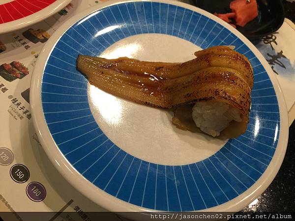 穴子魚握壽司,這種形狀長長的魚,很好吃,但越來越少‧