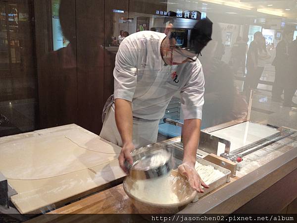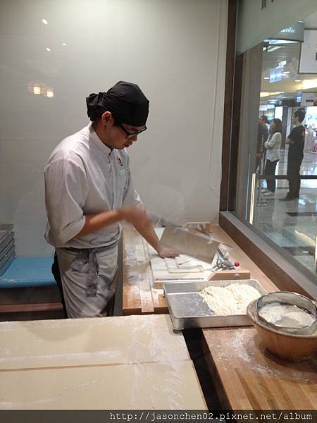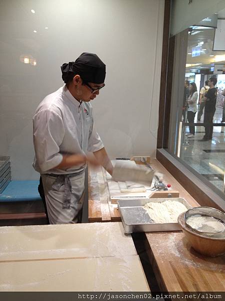 稻禾進口的右邊有一面大玻璃展示烏龍麵的做法,應該也是ㄧ種噱頭