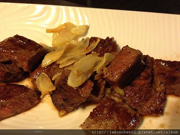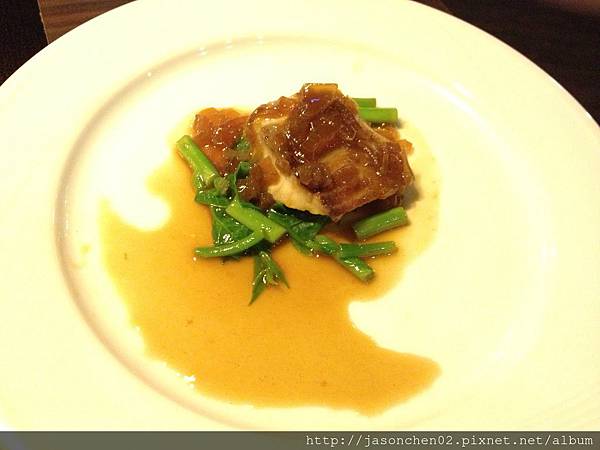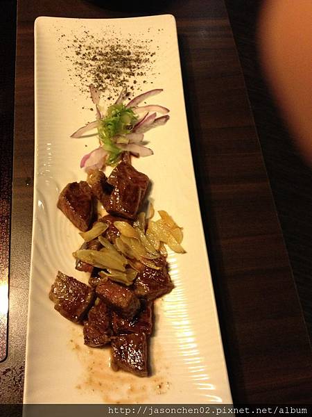 煎牛小排,以佐料作裝盤很別緻,入口油花極香,趁熱吃。