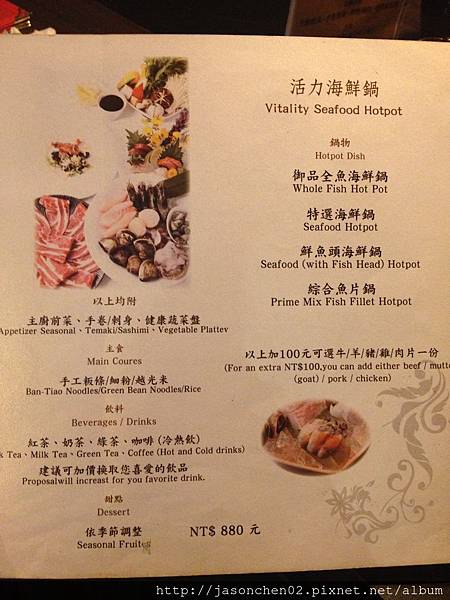 火鍋套餐依照主菜的不同,分為肉類、海鮮、海陸等