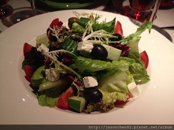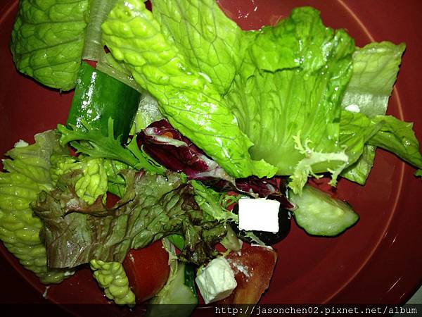生菜沙拉,還放了小黃瓜及黑橄欖、起士塊。