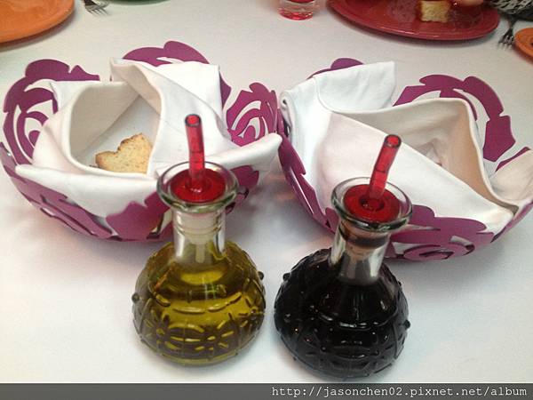 首先是熱騰騰的麵包沾著油、醋吃,非常好吃‧