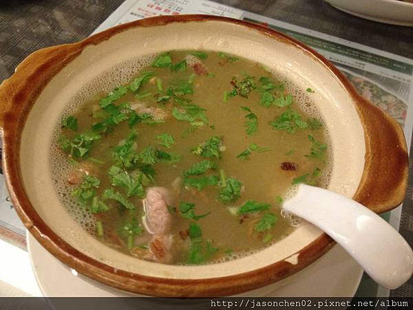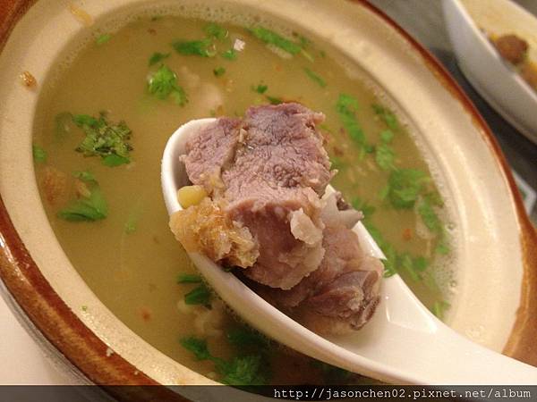 戈拉貝排骨湯,戈拉貝是緬甸的一種豆子,加了油蔥及香菜
