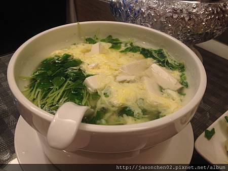 芙蓉豆苗湯,此地豆苗指的是豆苗嬰,非