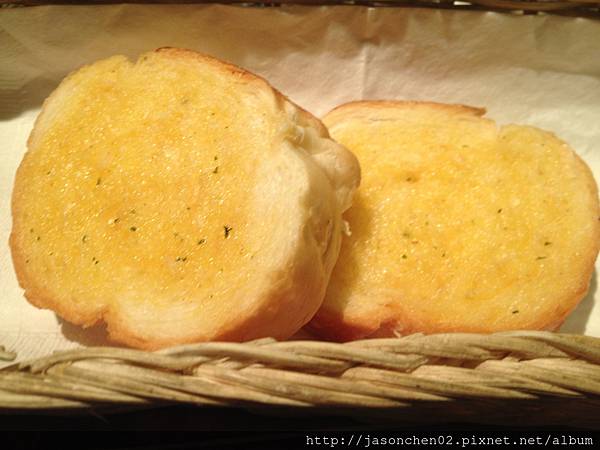 大蒜麵包,烤的熱騰騰的,挺好吃,尤其飢腸轆轆的時候