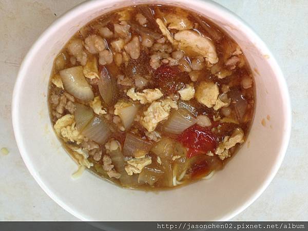 NT$85-元‧內有洋蔥、番茄、蛋塊、肉末,勾了薄芡‧