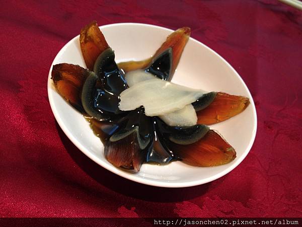 剛坐定,送上兩碟小菜,花生及子薑皮蛋,皮蛋黃非常多汁