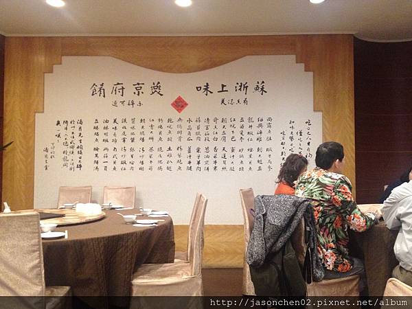 一進門的正面牆上,寫著蘇浙上味,燕京府餚,下款列出不少好菜