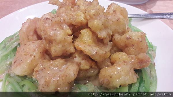碧綠蝦球,有青椒打底,還不錯吃‧