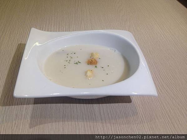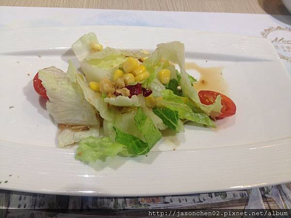套餐有磨菇濃湯及麵包、沙拉、主菜及飲料:
