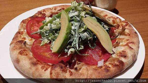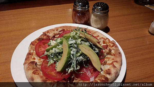 以雞肉、起司為基底,鋪上大量的生菜沙拉,