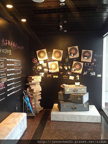 進門處就是以黑膠唱片做裝飾