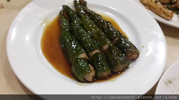 青椒鑲肉, 一般都是涼的, 它是溫熱的, 別有風味.