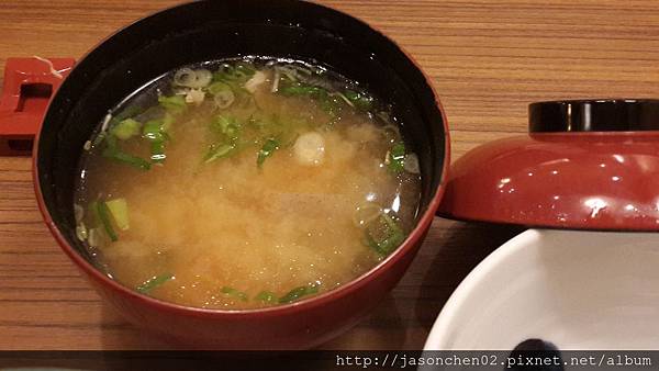 味噌湯,有海帶及豬肉兩種口味,皆可無限續碗,調味不會過鹹。