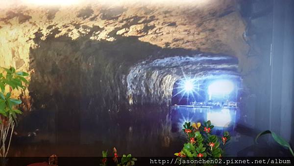 兩邊牆上是馬祖戰時的坑道巨幅照片