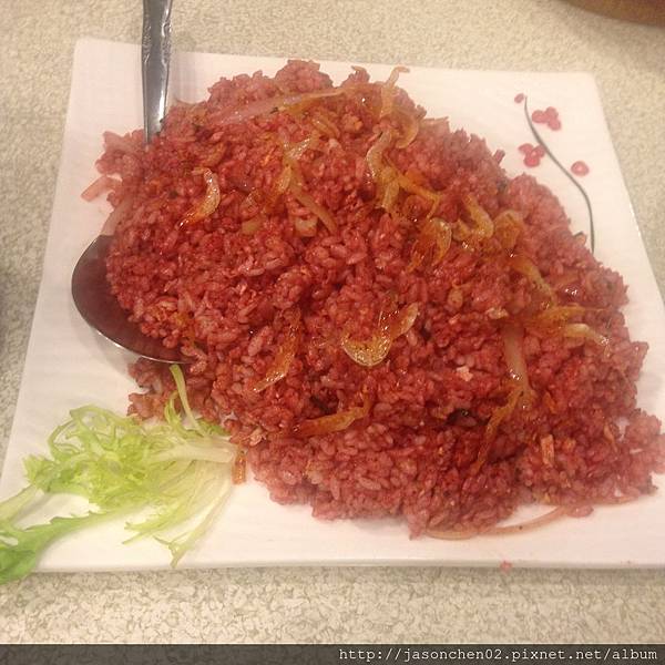 酒糟櫻花蝦炒飯,內加了洋蔥,有嚐