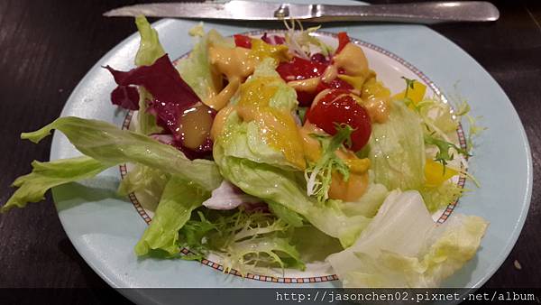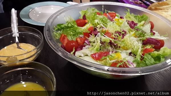 生菜沙拉,是大盤的,再分食‧有三種沾醬可供選擇‧
