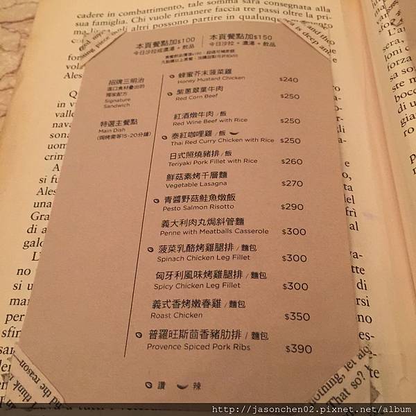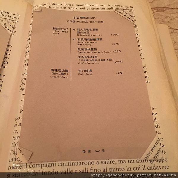 除了咖啡,它尚提供簡餐,它讓人驚艷的原文書菜單