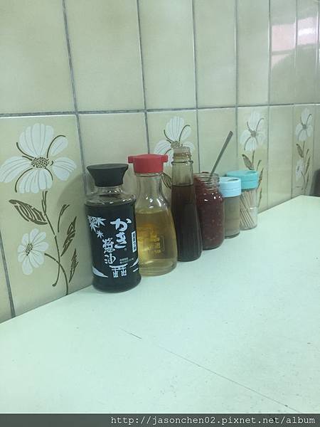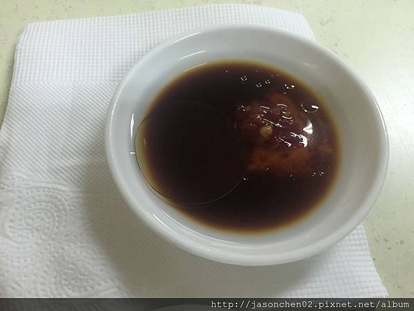 自調的沾醬:醋,醬油,麻油,辣椒