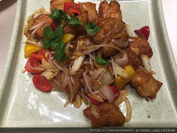 柚香手撕雞,有點像脆皮雞,皮脆肉嫩,又有柚子的清香‧
