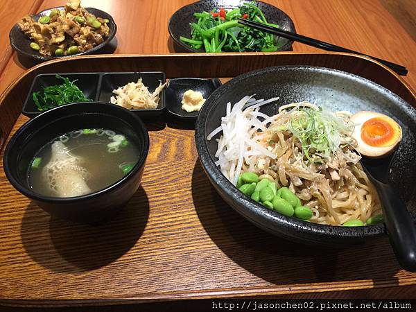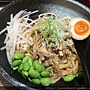 榨菜雞絲蔥油拌麵,有豆芽,雞絲,榨菜,毛豆,蔥絲,還有