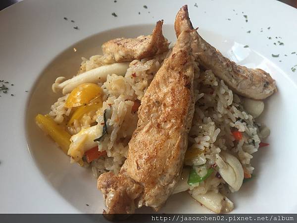 蒜香烤雞燉飯,燉飯稍鹹有點辣