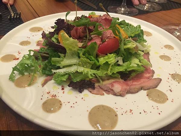 牛肉沙拉,主要吃它的薄牛肉片配生菜‧
