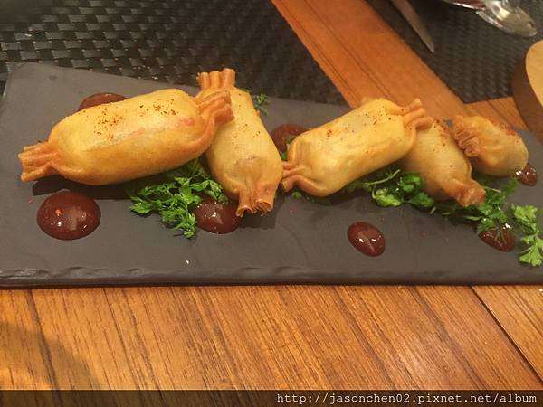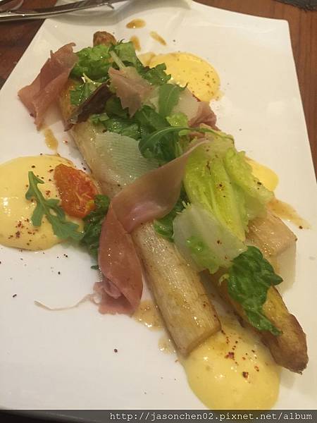 蘆筍捲,非常嫩,搭配醬料來享用,別有風味‧