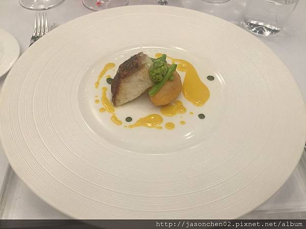 脆皮芒果海魚佐蕃紅花馬斯卡朋青檸醬汁