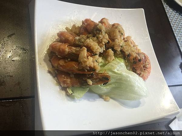 油爆蝦,放了太多蒜,這與一般江浙館的
