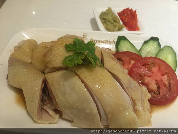 海南雞1/4 隻,它的薑末及辣椒末都好,雞也嫩淡了些‧