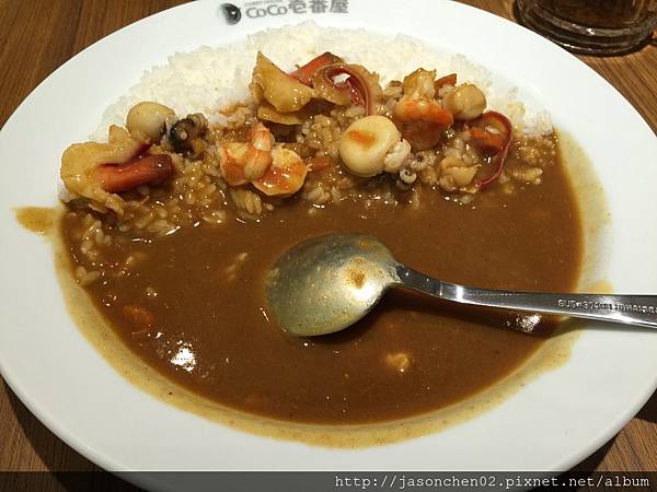 海鮮咖哩飯,海鮮比菜單上的照片量少了一半,