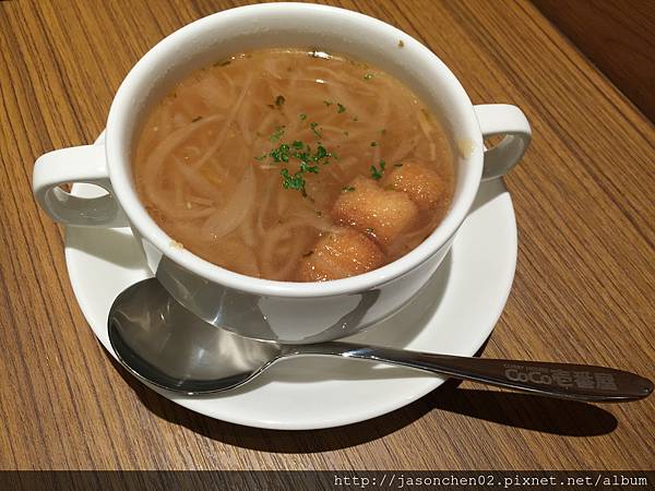 洋蔥清湯,很燙,所以不錯吃‧