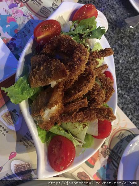 酥炸軟殼蟹沙拉,軟殼蟹炸得酥脆,配上生菜
