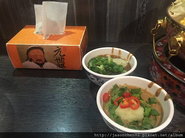 酌料: 一碗是自調的,一碗是餐廳綜合調製的‧