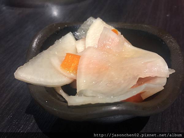 餐廳自製的泡菜,以白蘿蔔,紅蘿蔔為主‧
